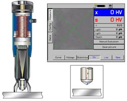 TIV(通過壓痕觀察)法是建立在維氏硬度檢測之上的;此方法通過特殊的光學(xué)方法“看穿” 維氏金剛石。,當(dāng)探頭壓人在材料的同時,青島超聲波硬度計,壓痕的圖片就被直接、自動并迅速地進(jìn)行傳輸和評估,儀器通過壓痕,讀出測量結(jié)果。