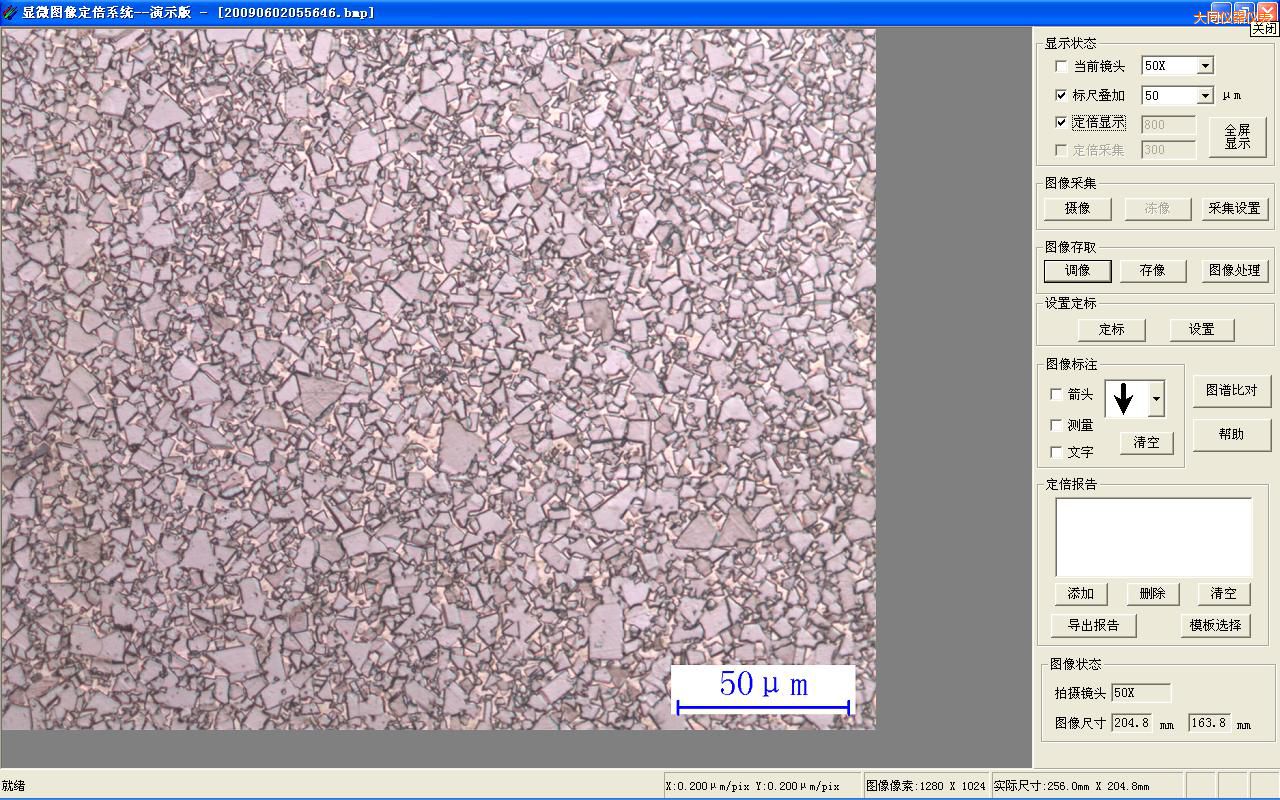 在金相圖像系統(tǒng)中,常常要進(jìn)行圖像定倍。但傳統(tǒng)的定倍軟件,只有“定倍打印”的單一功能,且打印出的圖片清晰度差,不能滿足金相圖像的尤其是高檔金相圖像用戶對(duì)打印分辨率的要求。