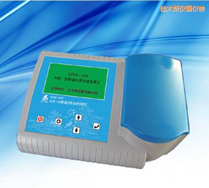 應(yīng)用領(lǐng)域 適用于牛奶、奶粉、牛初乳及牛初乳粉中蛋白質(zhì)的快速定量測定。 儀器特點 ● 檢測速度:包括樣品前處理在內(nèi),,檢測每個樣品只需5~10分鐘。 ● 抗干擾能力:該儀器測定樣品中蛋白質(zhì)氮,,真實反應(yīng)樣品中蛋白質(zhì)的含量,,不受三聚氰胺、尿素、硝酸銨及甘氨酸等非蛋白氮的干擾。 ● 操作方式:被測樣品采用流通引入方式,,取代傳統(tǒng)的樣品池,,方便用戶操作、清洗及維護(hù);克服了傳統(tǒng)凱氏定氮法樣品前處理系統(tǒng)繁瑣,,操作步驟繁雜等缺點,,避免了傳統(tǒng)方法需向樣品中加入濃硫酸,高溫消化等危險性步驟。 ● 數(shù)據(jù)存儲:數(shù)據(jù)存儲量大,,存儲容量大于2000條檢測數(shù)據(jù)。 ● 單機(jī)軟件:單機(jī)具有數(shù)據(jù)處理、結(jié)果統(tǒng)計等功能。 ● 數(shù)據(jù)接口:外設(shè)USB、RS232接口。 ● 耗材配件:提供完備的專用前處理設(shè)備和耗材,,一站式服務(wù)。 技術(shù)指標(biāo) ● 光源: 超高亮發(fā)光二極管 ● 測定下限: 0.50%(牛奶) 5.00%(奶粉) ● 測定范圍: 0.50 %~4.00%(牛奶) 5.00%~40.00%(奶粉) 4.00%~10.00% (牛初乳) 40.00%~80.00%(牛初乳粉) ● 精 密 度: 2 % ● 電源: AC 220V±22V,,50Hz±1 Hz ● 尺寸:275x210x130 mm ● 重量:1.7 kg 儀器配置 * 樣品前處理設(shè)備1套 * 微機(jī)接口和數(shù)據(jù)處理軟件1套 * 外置打印機(jī) * 試劑1套(50次)