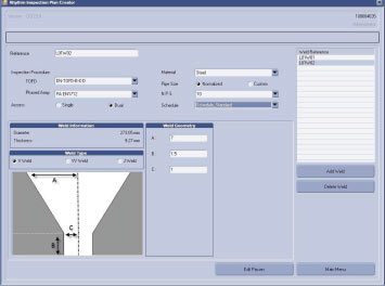 創(chuàng)建并完成一個(gè)檢測方案無需專業(yè)超聲檢測人員,僅需描述檢測任務(wù),輸入比如位置分布、焊縫數(shù)量、管道直徑、厚度、材料、所使用的焊接工藝、工序以及方法等基本信息,軟件將會(huì)計(jì)算并自動(dòng)完成或相控陣焊縫檢測需要的全部UT設(shè)置信息。這些設(shè)置包括:
