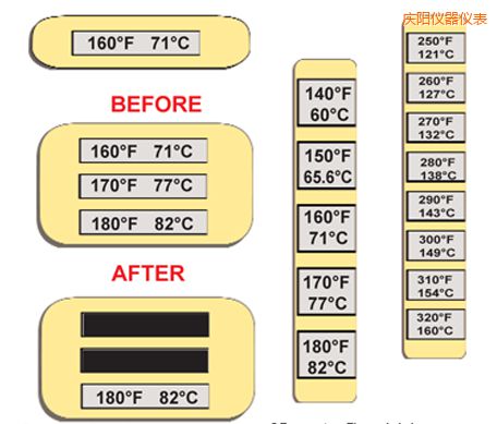 當閾定的每一步溫度達到時,產(chǎn)生不可逆轉的黑顏色。這些標簽可直接貼在清潔產(chǎn)品或設備的內外表面。