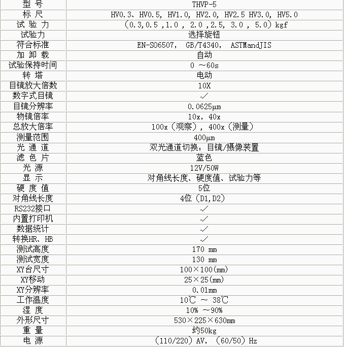 • THVP-5大屏數(shù)顯手動(dòng)轉(zhuǎn)塔維氏硬度計(jì)是光機(jī)電一體化的高新技術(shù)產(chǎn)品,維氏硬度計(jì)維修,顯示屏使用大的LCD屏幕,日本維氏硬度計(jì),它造型新穎、美觀,布洛維氏硬度計(jì),具有良好的直觀性、可操作性和可靠性,是測(cè)試維氏硬度的理想產(chǎn)品。該機(jī)的壓頭和物鏡之間的轉(zhuǎn)換采用自動(dòng)切換裝置. • 適用于測(cè)量微小、薄形試件、表面滲鍍處理后的零件和對(duì)瑪瑙、玻璃、陶瓷等脆性材料的顯微和努氏硬度的測(cè)定 以及涂層、表面覆層、層壓金屬、熱處理碳化層和淬火硬化層的深度與硬度梯度的測(cè)定。是科研機(jī)構(gòu)、工廠及質(zhì)檢部門(mén)進(jìn)行研究和檢測(cè)的理想的硬度測(cè)試儀器。 功能特點(diǎn): • 硬度計(jì)在機(jī)械上采用精密的結(jié)構(gòu)設(shè)計(jì),在光學(xué)上采用高倍率物鏡和數(shù)顯式測(cè)微目鏡,維氏硬度計(jì)hv0.1,測(cè)量光源采用冷光源等先進(jìn)技術(shù)。 • 采用閉環(huán)式加載控制系統(tǒng),維氏微硬度計(jì),使試驗(yàn)力精度提高,顯微硬度計(jì),示值的重復(fù)性及穩(wěn)定性佳。該系統(tǒng)用在維氏硬度計(jì)上,維氏硬度計(jì)操作,在國(guó)內(nèi)屬首創(chuàng)。 • 操作由面板上的觸摸鍵輸入,高溫維氏硬度計(jì),能預(yù)置試驗(yàn)力保荷時(shí)間、調(diào)節(jié)測(cè)量光源的強(qiáng)弱、選擇維氏或努氏測(cè)試模式、硬度轉(zhuǎn)換標(biāo)尺、文件號(hào)與儲(chǔ)存等。并能在屏幕上 顯示測(cè)量壓痕長(zhǎng)度、硬度值、測(cè)量次數(shù)和年、月、日及時(shí)間等,試驗(yàn)結(jié)果和數(shù)據(jù)處理,華銀維氏硬度計(jì),并通過(guò)打印機(jī)輸出,維氏硬度計(jì)廠家,還能通過(guò)RS232接口與計(jì)算機(jī)連接。 • 本硬度計(jì)還可根據(jù)用戶特殊需求配置CCD裝置進(jìn)行視頻測(cè)量和自動(dòng)測(cè)量。 技術(shù)參數(shù):